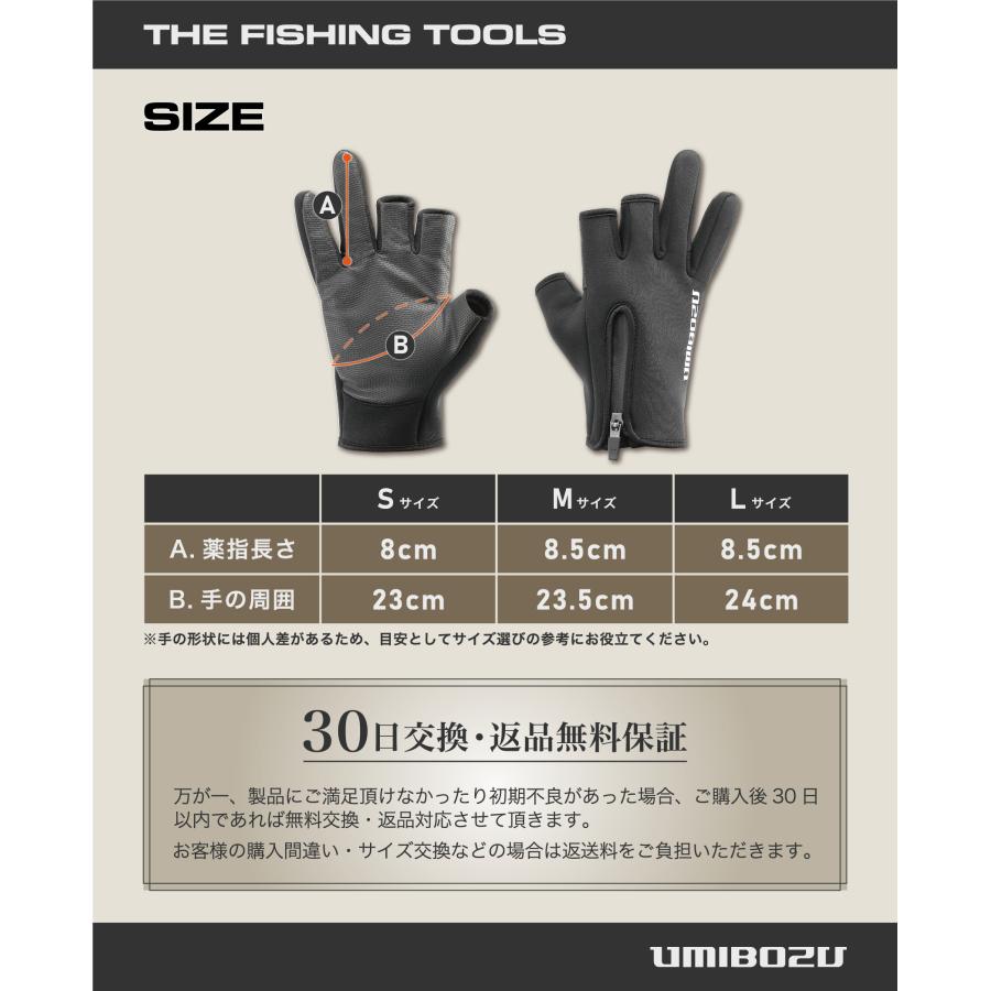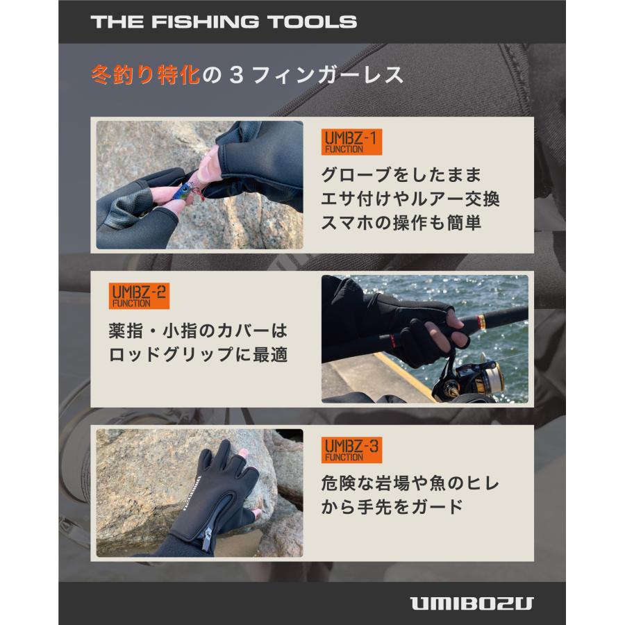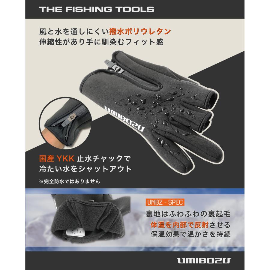 【再入荷】UMIBOZU ウミボウズ 釣り グローブ フィッシンググローブ 釣り用手袋 冬 防寒 YKK止水ジッパー 裏起毛 釣りグローブ 手袋 冬用グローブ 三本指出し