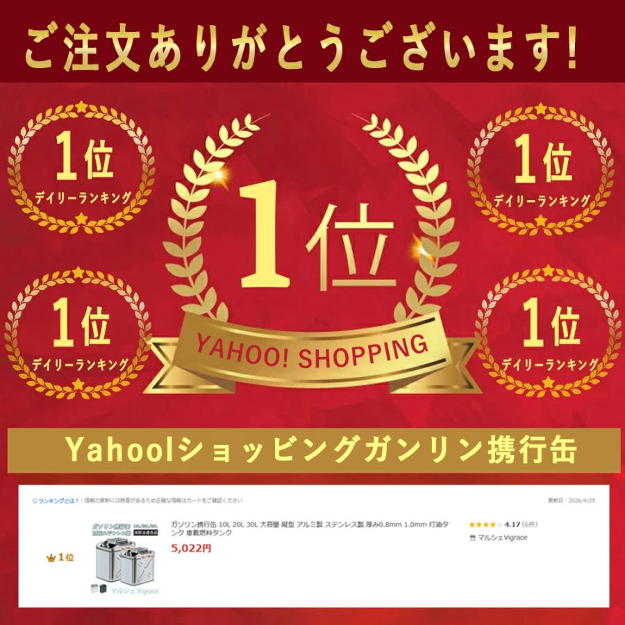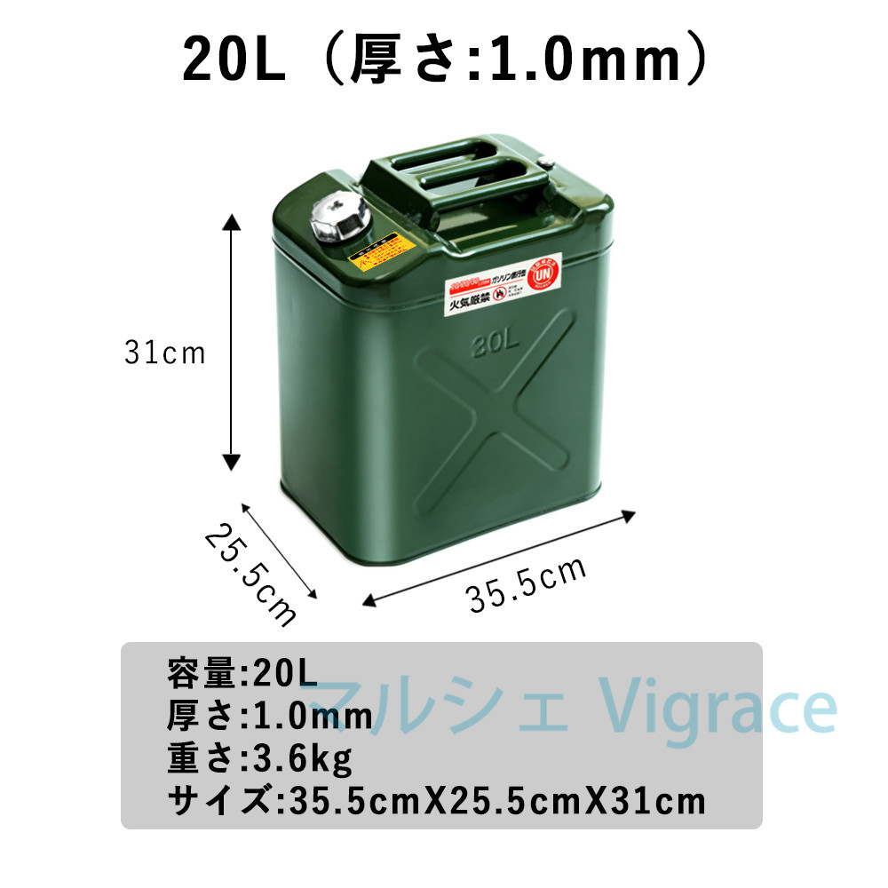・ガソリン缶の保管時は、空かどうかに関係なく、直射日光にさらされる場所、火気の近く、倒れやすい場所、車内密閉室、屋内の場所には置かないでくださいv・手作業による計測のため、商品サイズは実際のサイズと多少異なる場合がございます。ご理解いただきありがとうございます