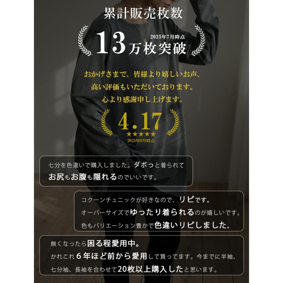 程よくゆとりのあるサイズ感で窮屈感なく着れました。ヒップが隠れる程の丈感で体型をカバーしてくれます。柔らかな生地で着心地も抜群ですね♪