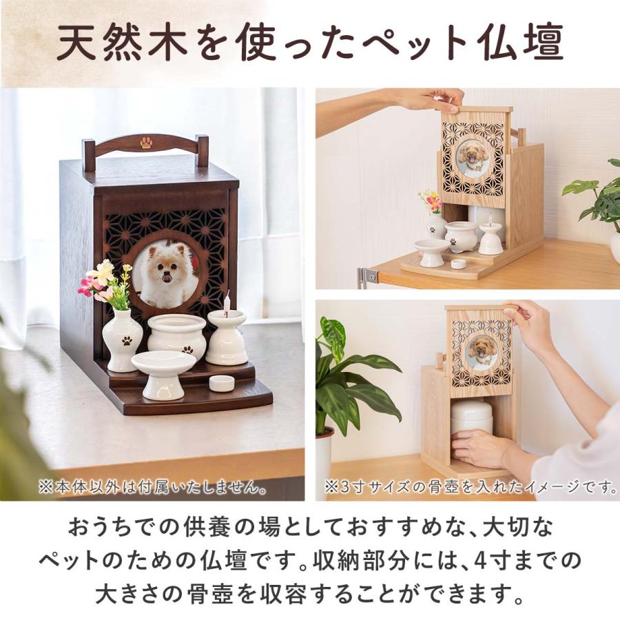 ペット用仏壇 シンプル かわいい ペット供養 犬 猫 天然木 タモ材 16×30×25cm ミニ 卓上 コンパクト 骨壺収納 3寸/4寸対応 手元供養 1年保証 送料無料