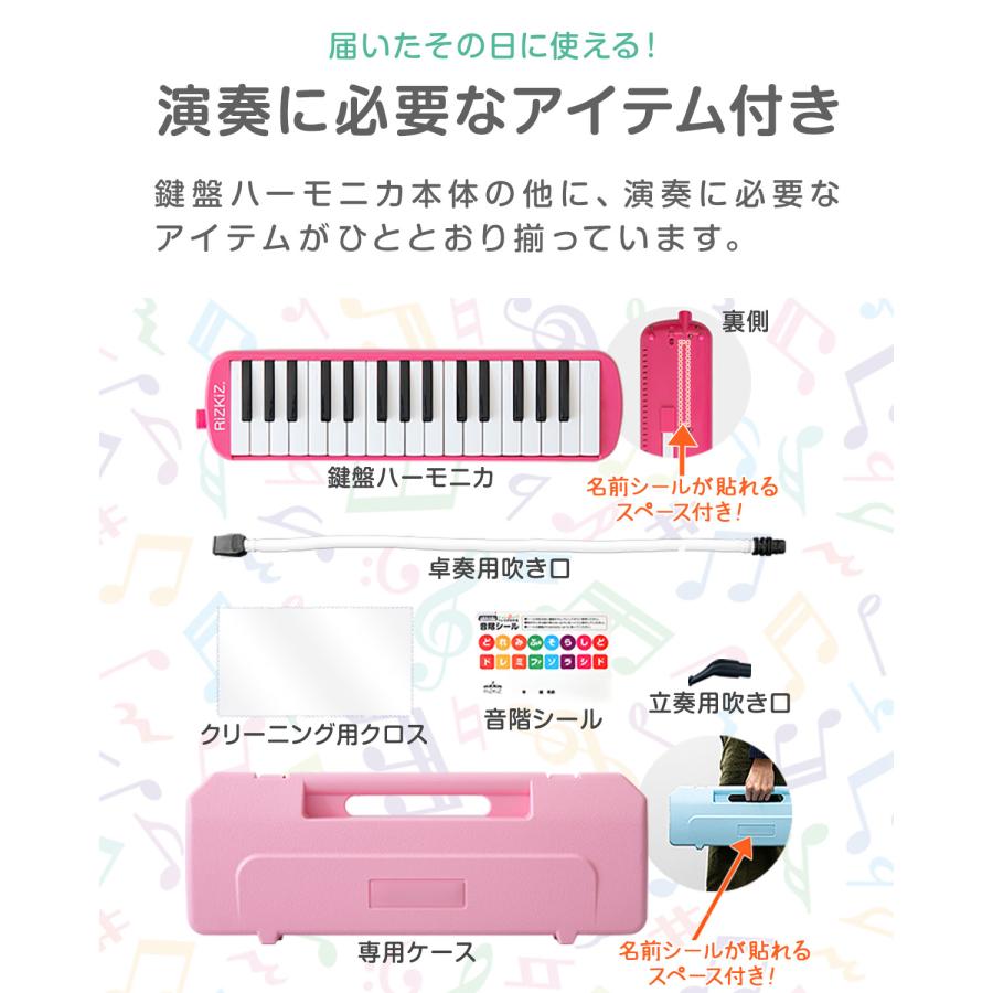 ヤフー1位 鍵盤ハーモニカ 32鍵盤 ケース付き 卓奏用 立奏用 吹き口 ピンク ブルー グリーン 水色 青 緑 黒 音階 音楽 小学校 幼稚園 楽器 1年保証 送料無料