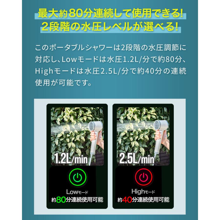 1年保証 ポータブルシャワー 電動シャワー 温水 簡易シャワー FIELDOOR 電動 USB充電式 ヘッド一体型 最大連続80分 アウトドア キャンプ 海 災害用 送料無料