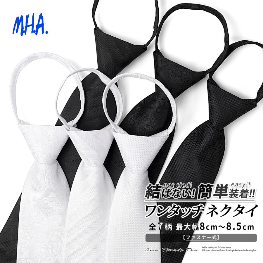 ワンタッチネクタイ ネクタイ ワンタッチ メンズ 黒 白 結婚式 披露宴 冠婚葬祭 葬式用 ブラック ホワイト シルバー 50代 おしゃれ 簡単ネクタイ ファスナー式