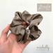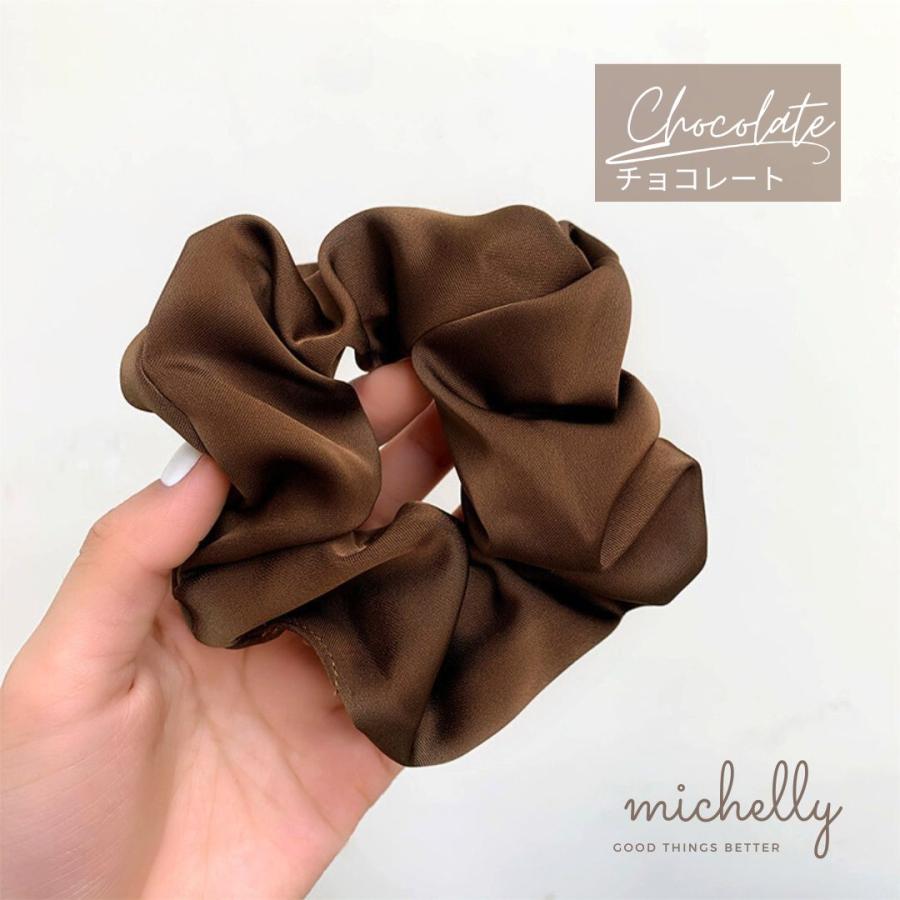 光沢のあるサテン素材が魅力のシュシュは、上品で華やかなツヤ感が特徴