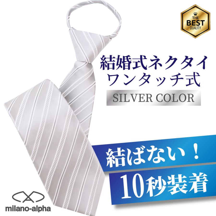 ネクタイ ワンタッチ 結婚式 披露宴 フォーマルネクタイ シルバー グレー メンズ フォーマル ストライプ 親族 友人 ウエディング パーティー