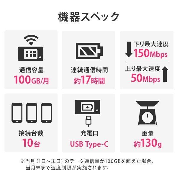 ● 大容量100GB/月だから、動画や音楽、SNSもたっぷり使える! 1日あたりの制限もなし
