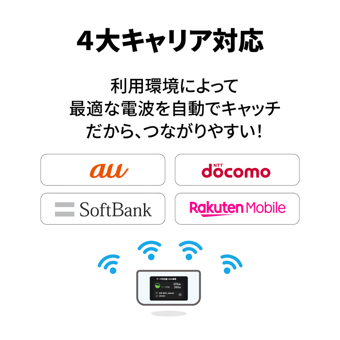 【4キャリア(SoftBank、au、docomo、Rakutenモバイル)対応モバイルワイファイルーター!クラウドSIM AIR-1(100GB/月) 】