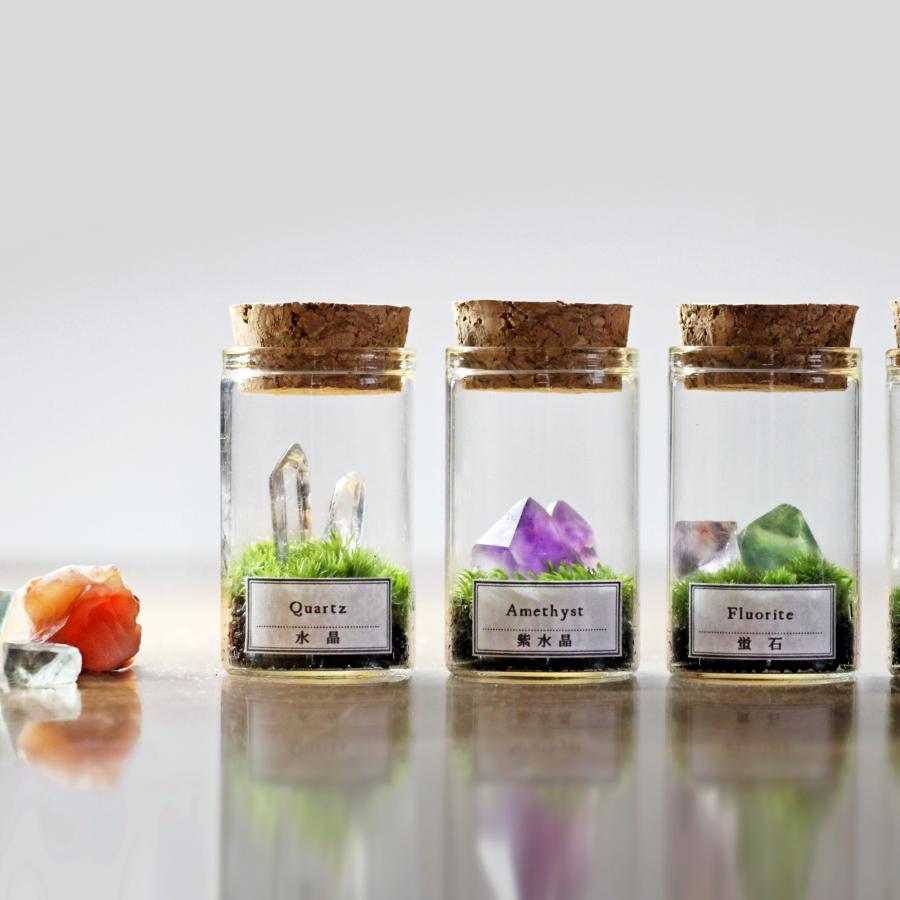 ・素材:ガラス容器、コルク蓋、天然石