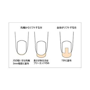リフトしやすい方は爪先に少量塗布することにより、ジェルの持ちが良くなります。