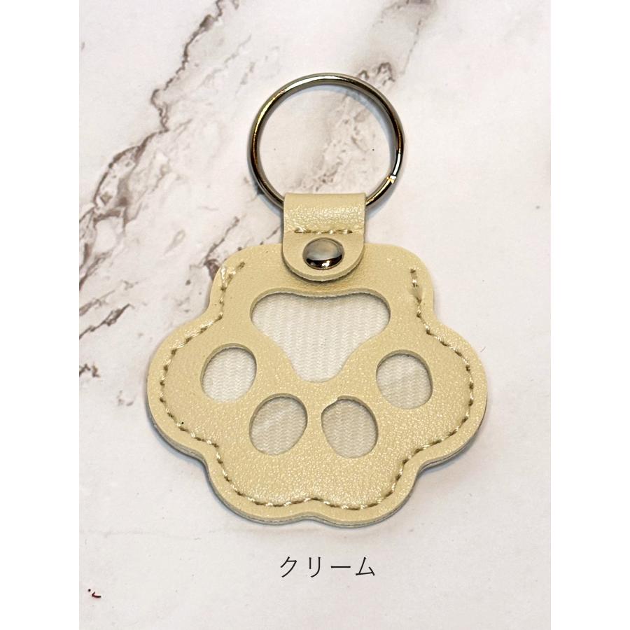 肉球のくり抜きデザインから中の毛が見える、やさしく癒されるデザインです。