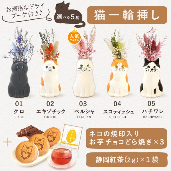 母の日 ギフト プレゼント 2026 花 猫 一輪挿し 猫好き お菓子 スイーツ ドライフラワー 黒猫 ペルシャ ハチワレ 50代 60代 70代