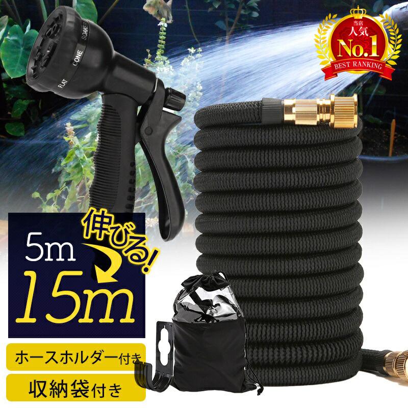 【Rank1位】 伸びるホース 15m ホース 耐久性 改良版 伸縮 ホース 洗車 ガーデニング コンパクト 掃除用 おしゃれ 伸縮性 張力 耐圧 軽量 伸びる 強化 園芸 3倍