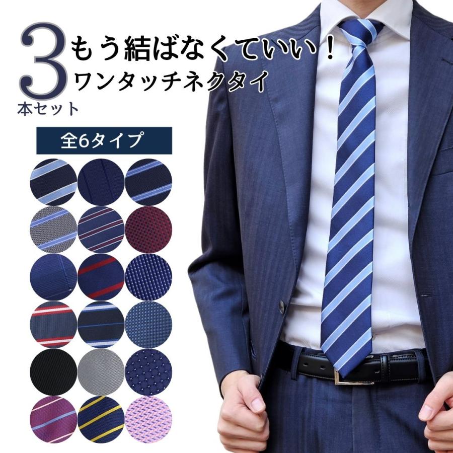 ワンタッチ ネクタイ 通勤 入学 就活 黒 白 結ばない 冠婚葬祭 結婚式 プレゼント 父の日 3本セット