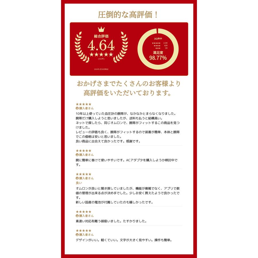 | 付属品 | 専用カフ(型式HEM_FM31_B)、お試し用電池(単3 形アルカリ乾電池4 個)、収納ソフトケース、取扱説明書(品質保証書付き)、医療機器添付文書 |