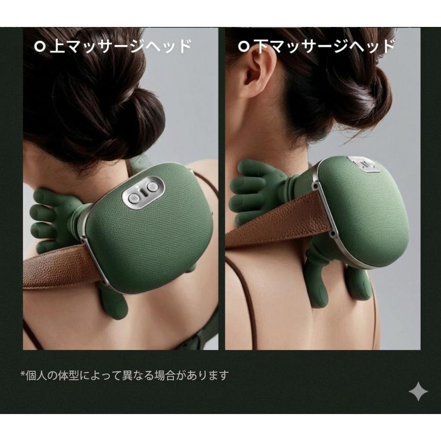 温熱機能:約 42℃の温かさで筋肉を緩め、血行を良くします。寒い季節や冷房の効いた室内でも、あったかく気持ちの良いマッサージ体験を提供します。