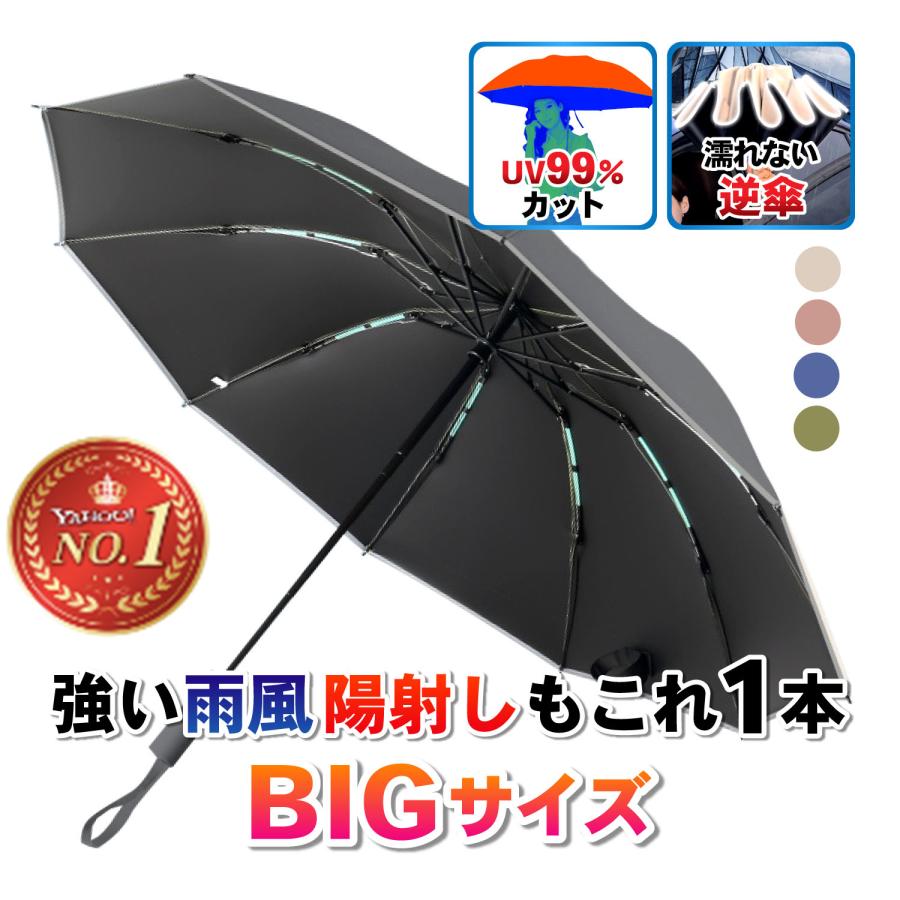 ダブルボーン構造により強く柔軟性があるため強い風で逆さに反しても元に戻ります。折れたり曲がったりする心配はなくワイドな大きい作りなため豪雨、強風にも安心!たくさんの買い物をしてもどれも濡れることなく過ごせます!