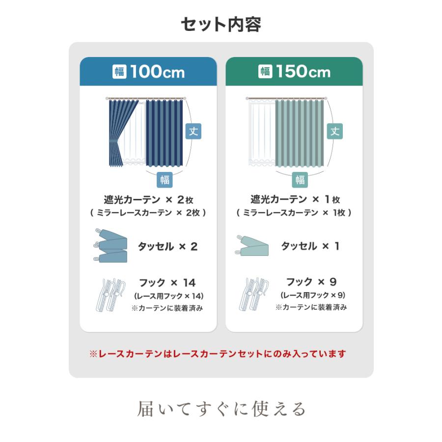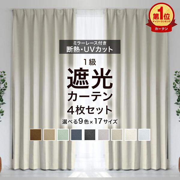 カーテン 4枚セット おしゃれ 遮光 1級 遮光カーテン レースカーテン ミラーレース 2枚組 100cm幅 150cm幅 洗える セット