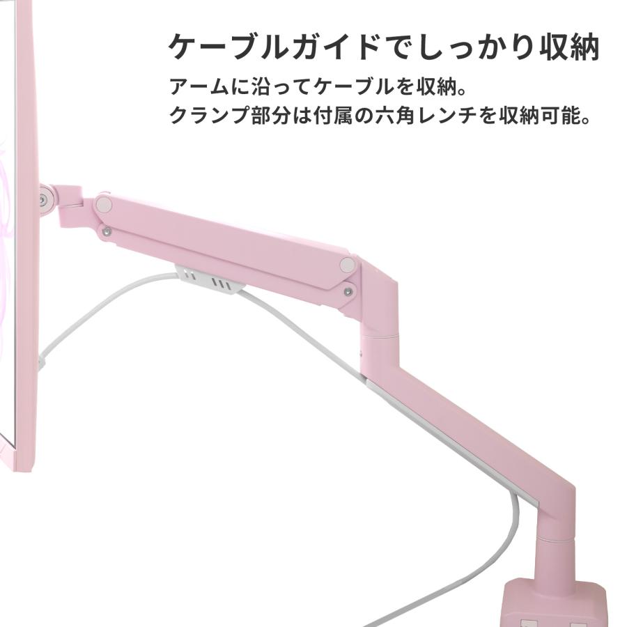 モニターアーム 白 スリム シングル ホワイト ピンク ブルー ガススプリング 17〜32インチ ゲーミングモニター スタンド PS1S WAVE PSW1S Pixio