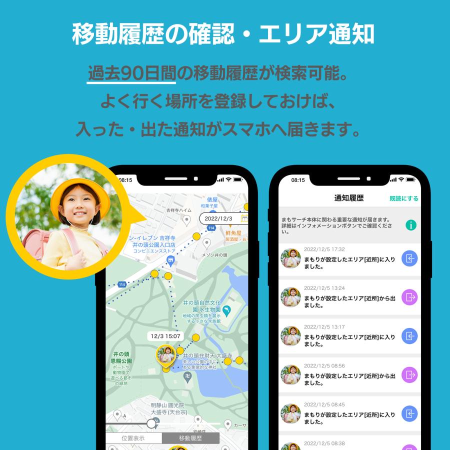 1、携帯電話が持ち込めない学校でも利用可能なので、保護者のスマートフォンでお子さまの行動履歴を確認できる。