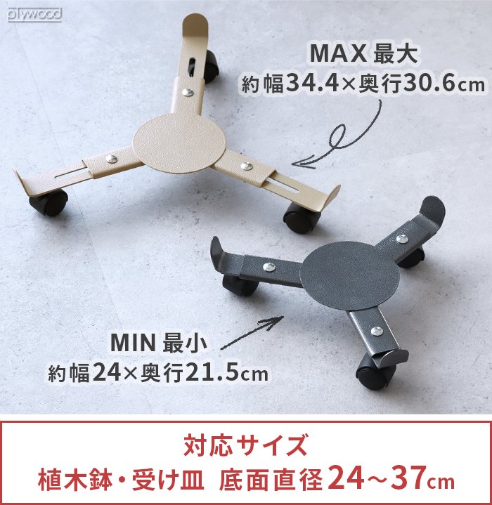 | キャスター付き(ストッパー無し) プランターのサイズに合わせてアジャスターでサイズ調整可能。金具でしっかり固定してください。(工具不要) |