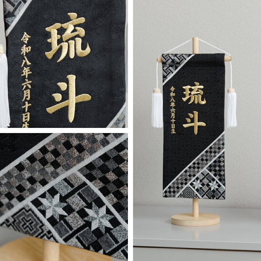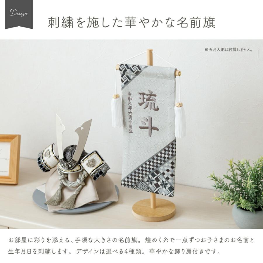 Сколько это будет стоить? きらめく糸と幾何学模様が美しい、男の子向けの刺繍名前旗中サイズ。当店オリジナル兜鎧『ぷりふあ五月人形』とも合うコンパクトサイズです。インテリアのように飾れるおしゃれなデザインは、モダンスタイルの兜飾りや鎧飾りとも好相性。こどもの日や端午の節句、初節句のお祝いギフトにもおすすめです。