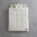 掛けふとんカバーは、出し入れしやすいファスナー式で、上端から下端まで全開にできるので、お洗濯後のセッティングも楽々です。内側に中綿とカバーがずれないようにそれぞれに紐とループが付いています。