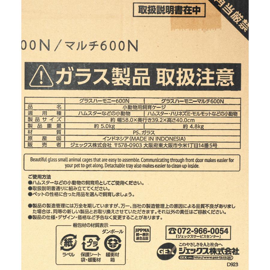 グラスハーモニーマルチ600N:ケージ本体のみで、回し車やウォーターボトルは付属していません。