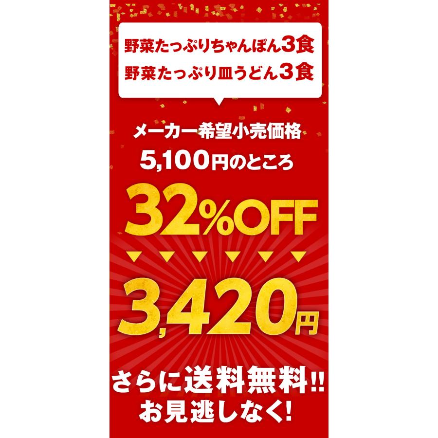 衝撃の32%OFF メーカー希望小売価格5,100円→3,420円 リンガーハット 野菜たっぷり ちゃんぽん 3食・ 野菜たっぷり 皿うどん 3食セット ポイント消化 送料無料