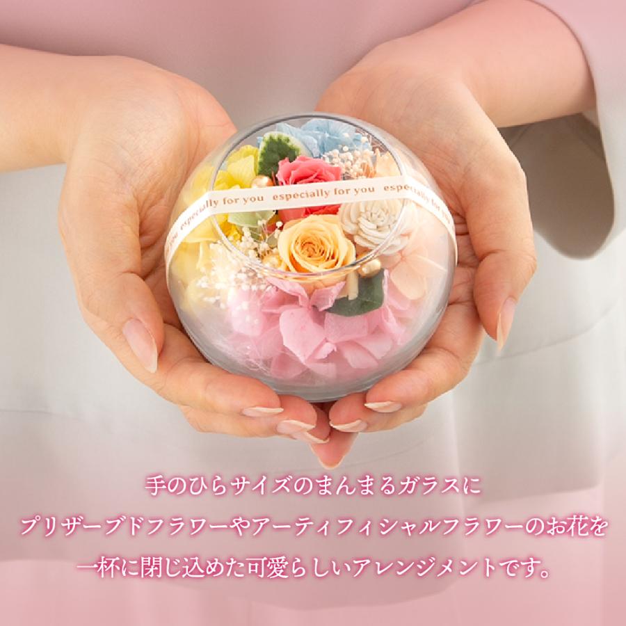 | 使用花材 | ・プリザーブドフラワー:ローズ、アジサイ、カスミソウ ・装飾品 :ソーラーローズ(木の皮で形作られたお花)、アーティフィシャル(造花)、装飾ピック、リボン(especially for you) ※使用花材は季節や仕入れ状況により多少異なる場合がございますことをご了承ください。商品のイメージが著しく変わることはありませんのでご安心ください。 |