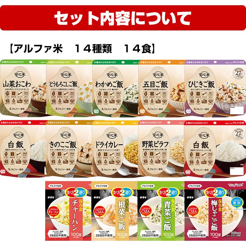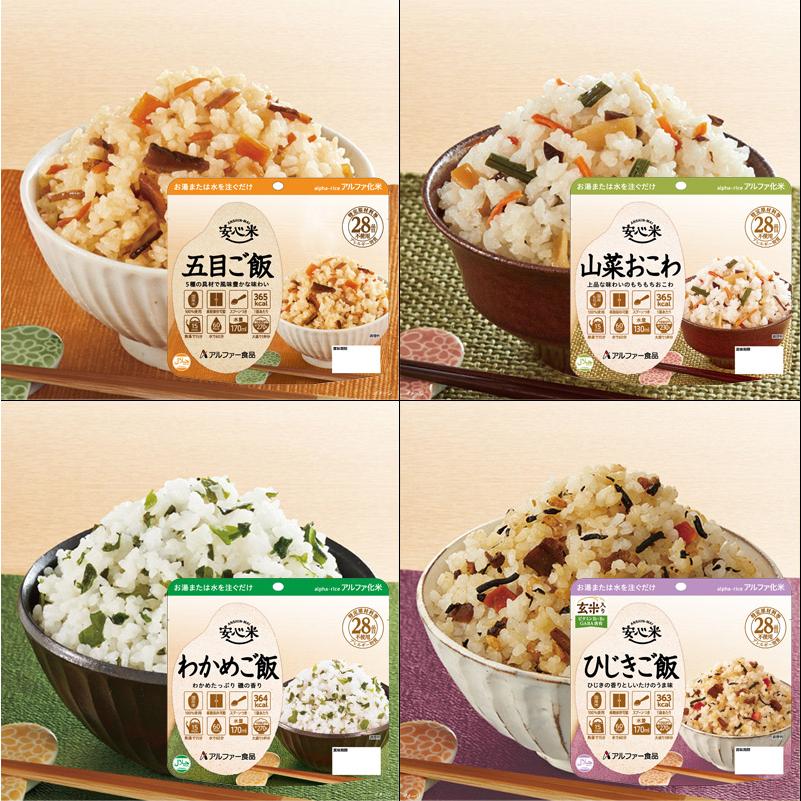各単品販売ページにてご確認ください アルファ米:ドライカレー・ えびピラフ・チキンライス・五目ごはん・わかめごはん・山菜おこわ パン缶:オレンジ・コーヒー・黒糖・プレーン