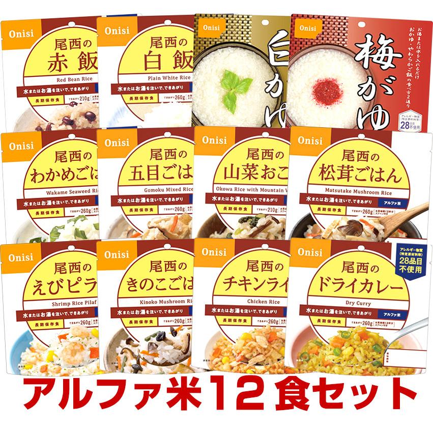 (予約販売:4月13日頃より順次出荷予定)5年保存の非常食 尾西食品のアルファ米 12種類全部 セット 保存食 防災食