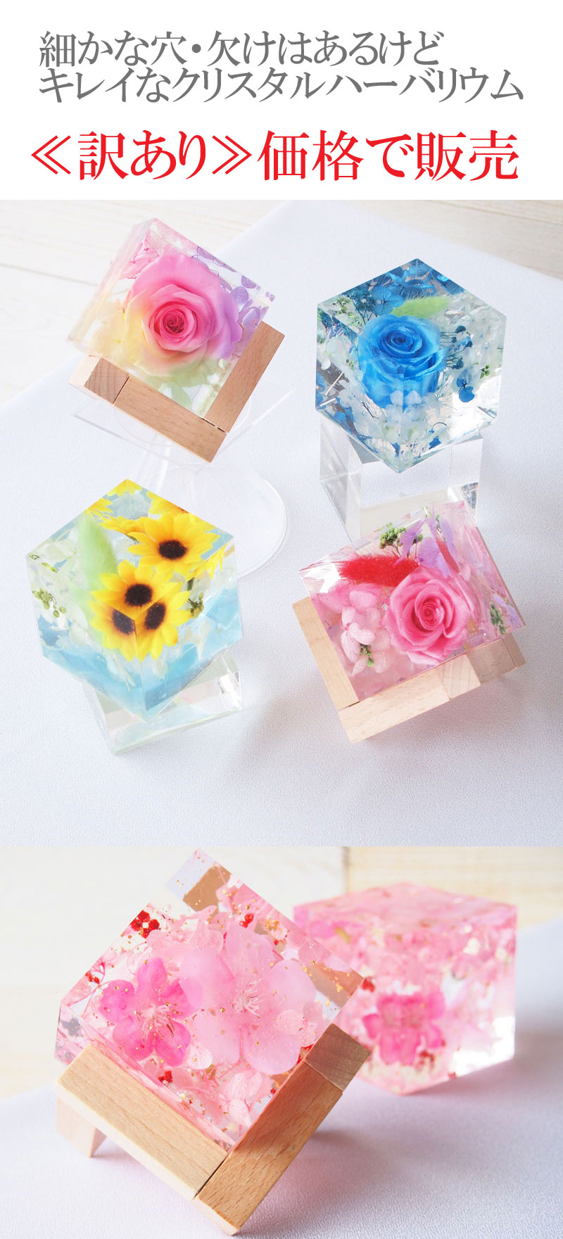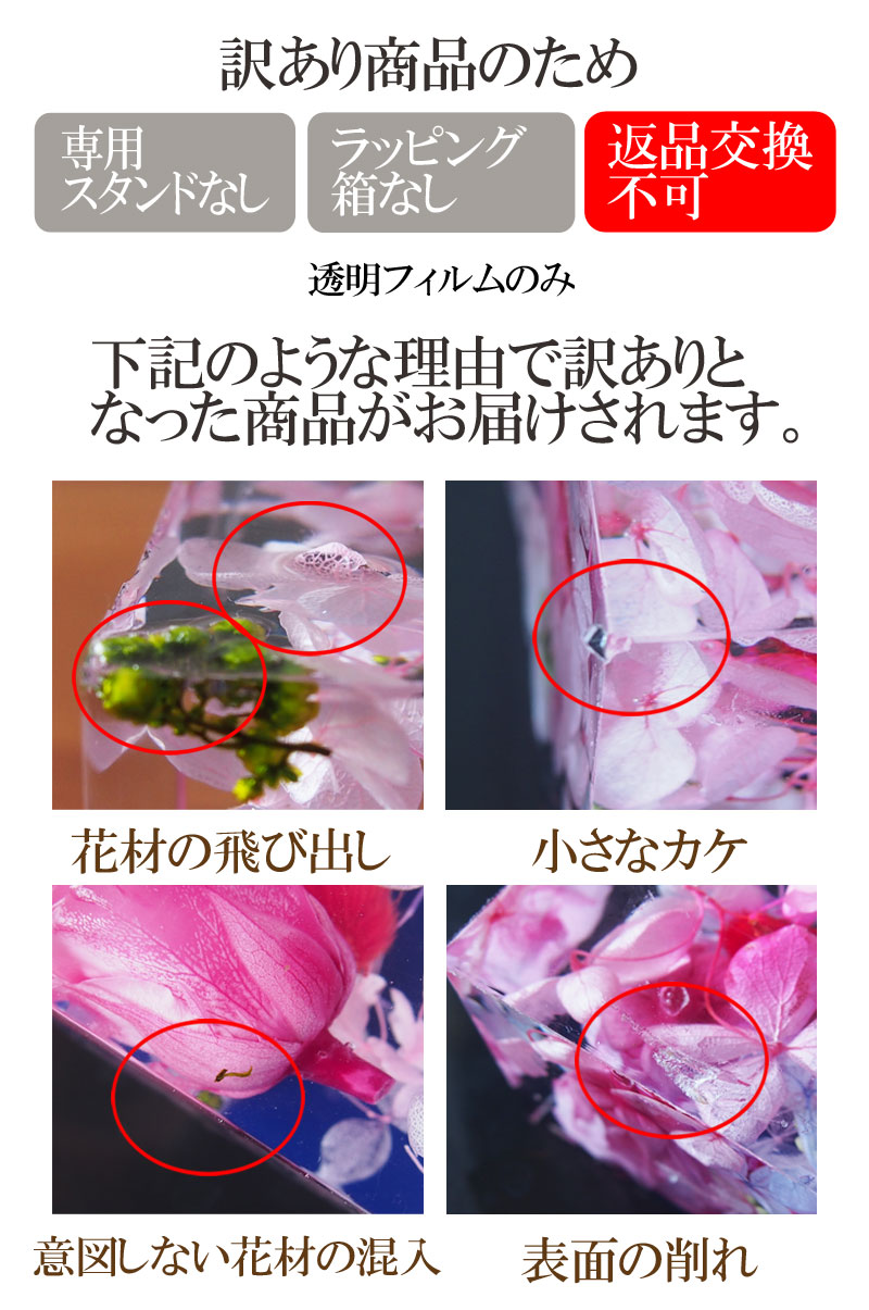 | 自然の素材を使用しているため一つとして同じ物はありません。※桜・ひまわり・プルメリアのお花はアーティフィシャルフラワーです。 シリコン樹脂の性質上、エッジ(特に角)部分が欠けやすくなっております。 お花が触れ合うデザインの為、お花同士で色移りがございます。 裏面に吸盤の跡が付く場合がございます。 花材、ラッピングのデザインにつきまして変更になる場合がございます。 |