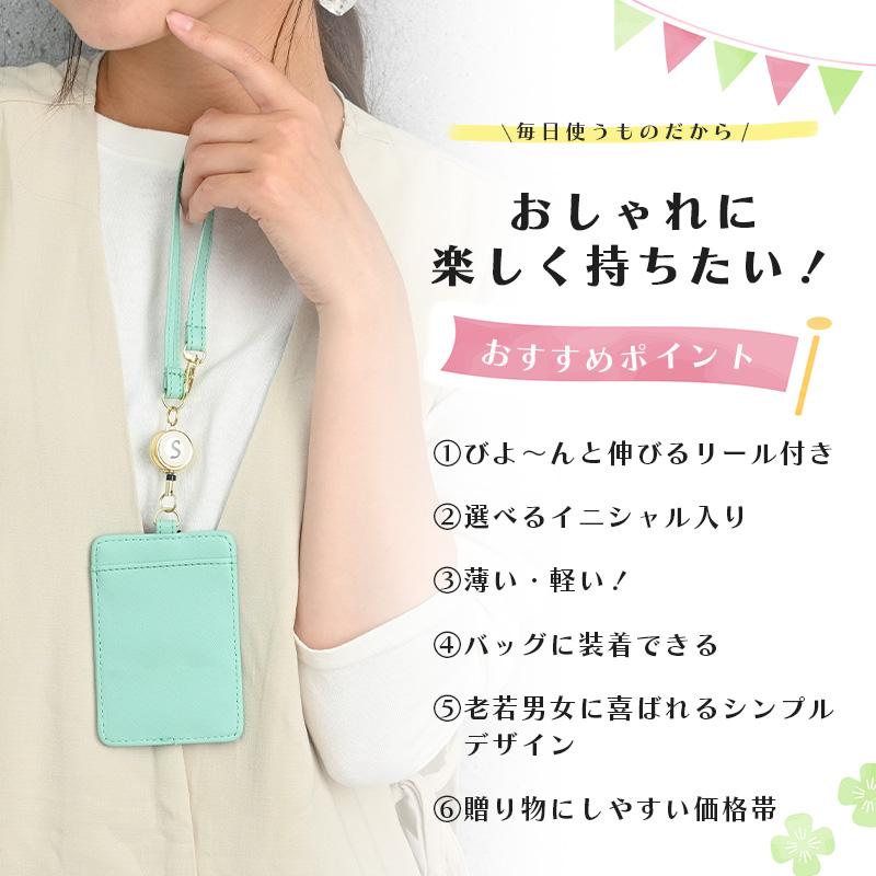 イニシャル入りのリール付きパスケース。定期やicカードを入れてバッグに付けておけばバッグから出す手間なく楽々ピタッとタッチできます。定期入れのほかに交通電子マネーやセキュリティカードなどカードタイプのものを入れておくのもおすすめ。通勤、通学、日常生活に役立つ便利なカードケースです。