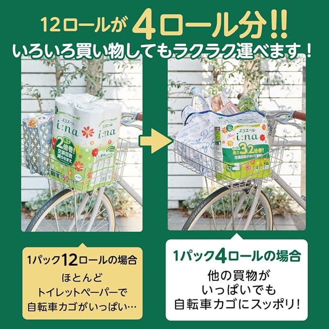 【ケース販売】エリエール トイレットペーパー i:na(イーナ) 3.2倍巻き 80m×64ロール (8ロール×8パック) ダブル 華やかなフローラルの香り 大王製紙