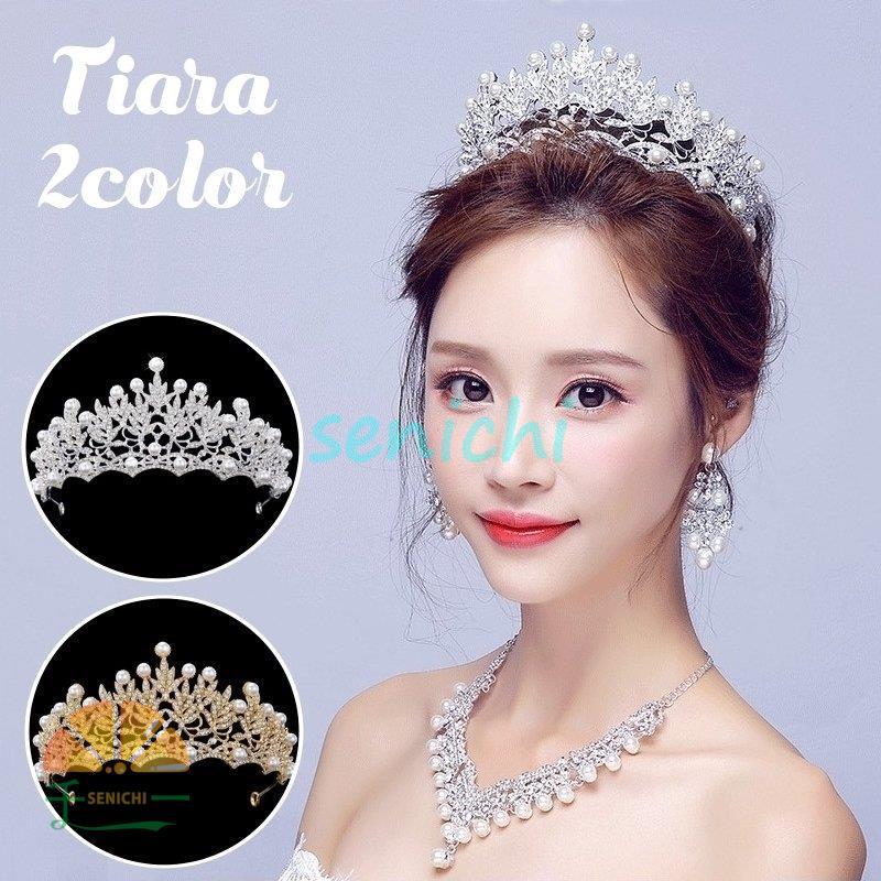 ティアラ レディース ヘアアクセサリー ヘッドドレス 髪飾り ラインストーン パール調 結婚式 披露宴 花嫁 ブライダル ウエディング 二次会 撮影