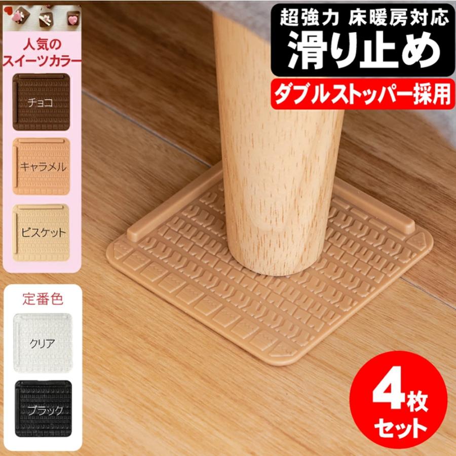 家具 滑り止め 超強力 角型 8cm 4個入り ダブルストッパー付 ソファー ベッド ズレ防止 キズ防止 滑り止めゴム 床暖房対応