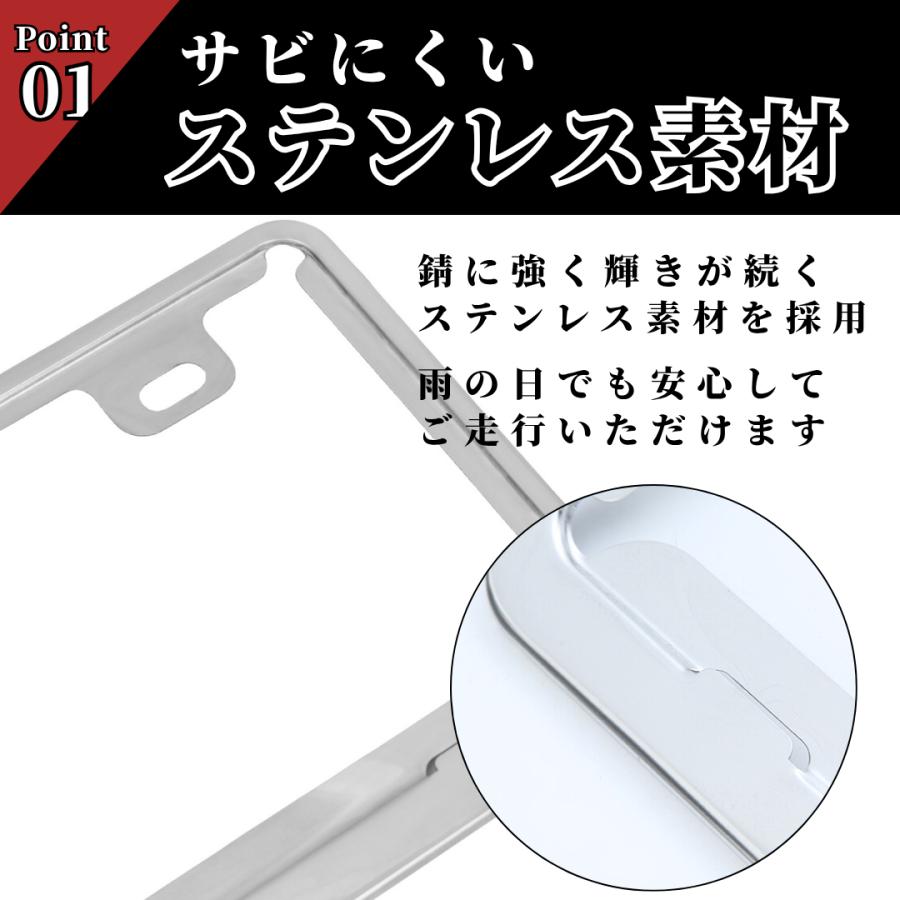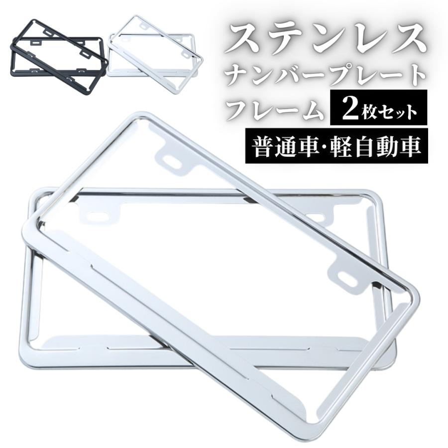 ナンバーフレーム 軽自動車 ナンバープレート フレーム ステンレス 2枚セット シルバー ブラック 普通車 前後セット 日本規格 薄型 メッキ サビにくい 簡単 取付 車検対応 ドレスアップ 外装 パーツ