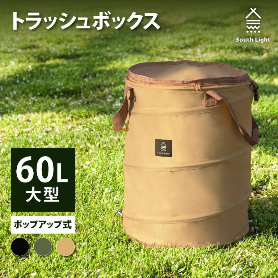 トラッシュボックス ポップアップ キャンプ用ゴミ箱 60L 折りたたみ ゴミ箱 ボックス 蓋付き バッグ 収納ボックス 薪入れ ダストボックス ソロキャンプ 用品 アウトドア キャンプ用 ゴミ箱兼収納用