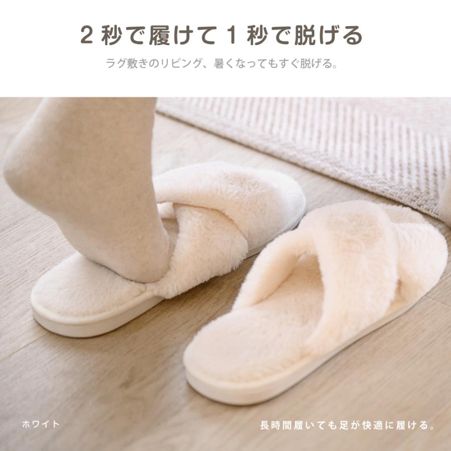 【滑りにくく使いやすい】ゴム製ソールなので、床面をキャッチして安定して歩ける。底には滑りにくくパタパタ音がしにくい衝撃吸収ゴムを使用しています。TPR(熱可塑性ゴム)を使用し、衝撃吸収性に優れて歩行は静かで、室内の床も保護します。拭き取るだけでお手入れ完了! 【ふわもこ&履き心地良い素材】ふわふわ柔らかなファー素材は見た目も可愛くて履き心地良い。一度履いたら手放せない!!秋冬大人気ルームシューズ!足全体を包み込んで暖かいし、気持ちいい。