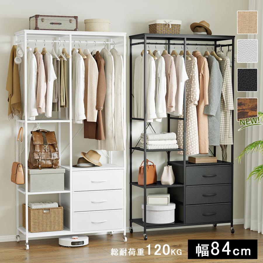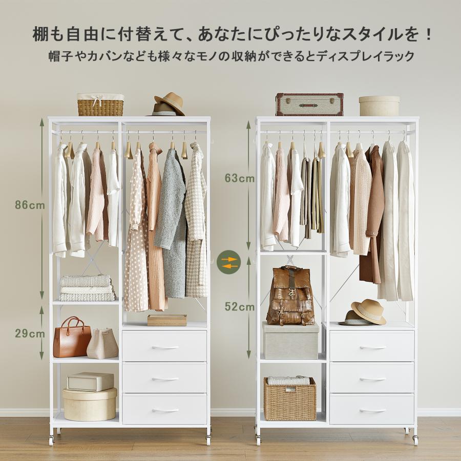 【多機能収納】引き出し・仕切り・S字フックを備え、小物からバッグ・帽子まで立体収納可能。天板は多様な衣類の吊り下げに対応。
