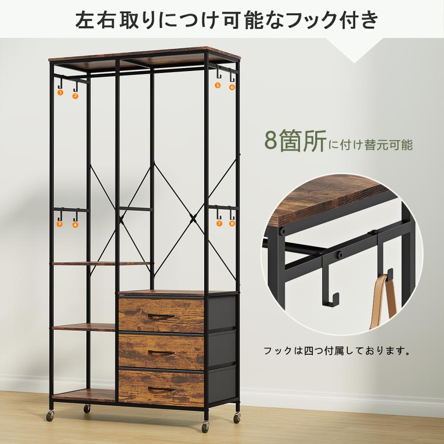 キーワード:ハンガーラック 衣装棚 洋服ラック スリム 収納ラック 大容量 頑丈 引き出し付き ワードローブ ベッドルーム用 リビングルーム用 玄関用 クローゼット コートハンガー おしゃれ 北欧 棚付き ポールハンガー ハンガースタンド 衣類収納 洋服収納 組立式 収納棚 省スペース 収納家具 洋服かけ コンパクト