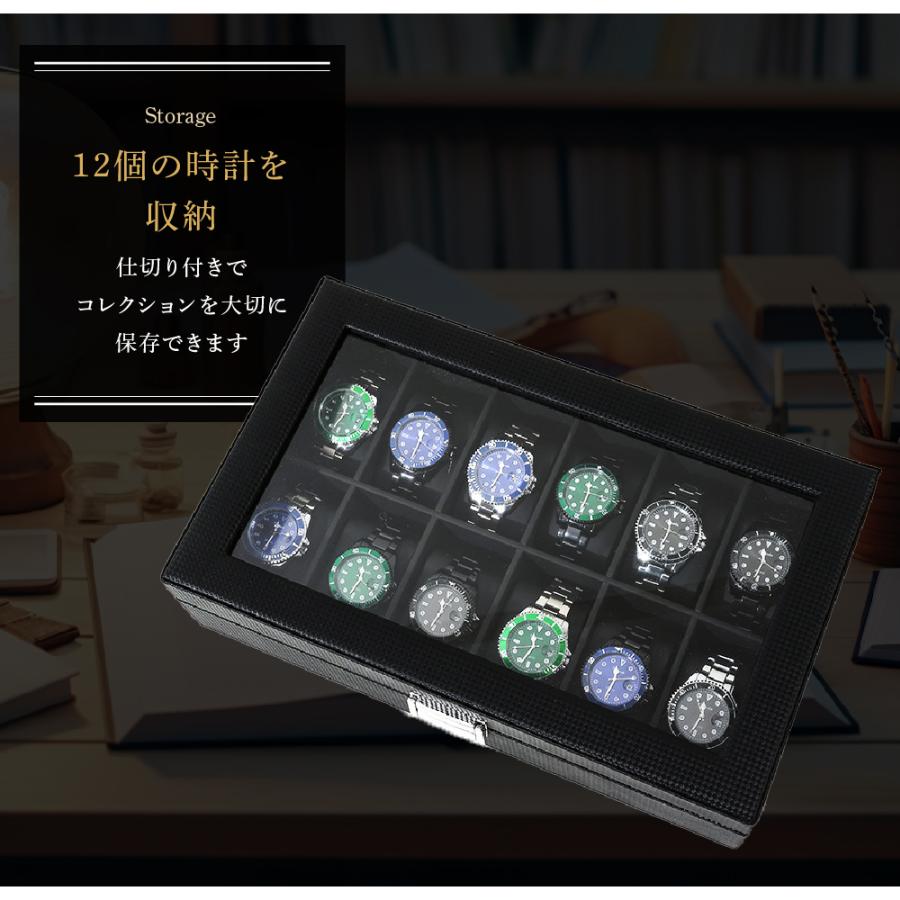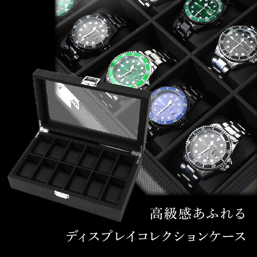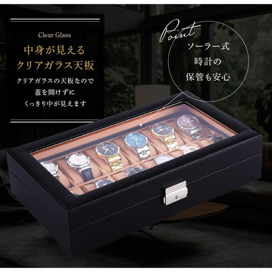 腕時計ケース 12本用 仕切り付き クッション付き 天板ガラス カーボンファイバー 保管 コレクション ウォッチケース インテリア ギフト プレゼント 贈り物 爆買