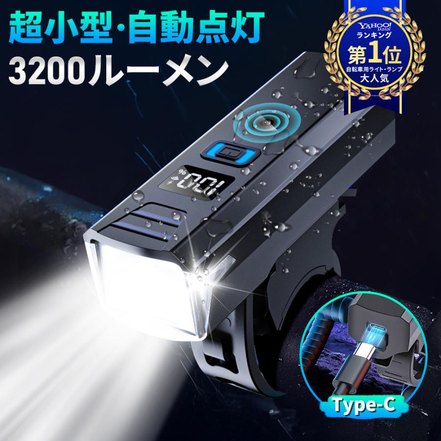 🚴 アップグレード版 自転車ライト 3200ルーメン|光センサー自動点灯・IPX7防水・Type-C急速充電暗い道もトンネルも自動で最適照度。