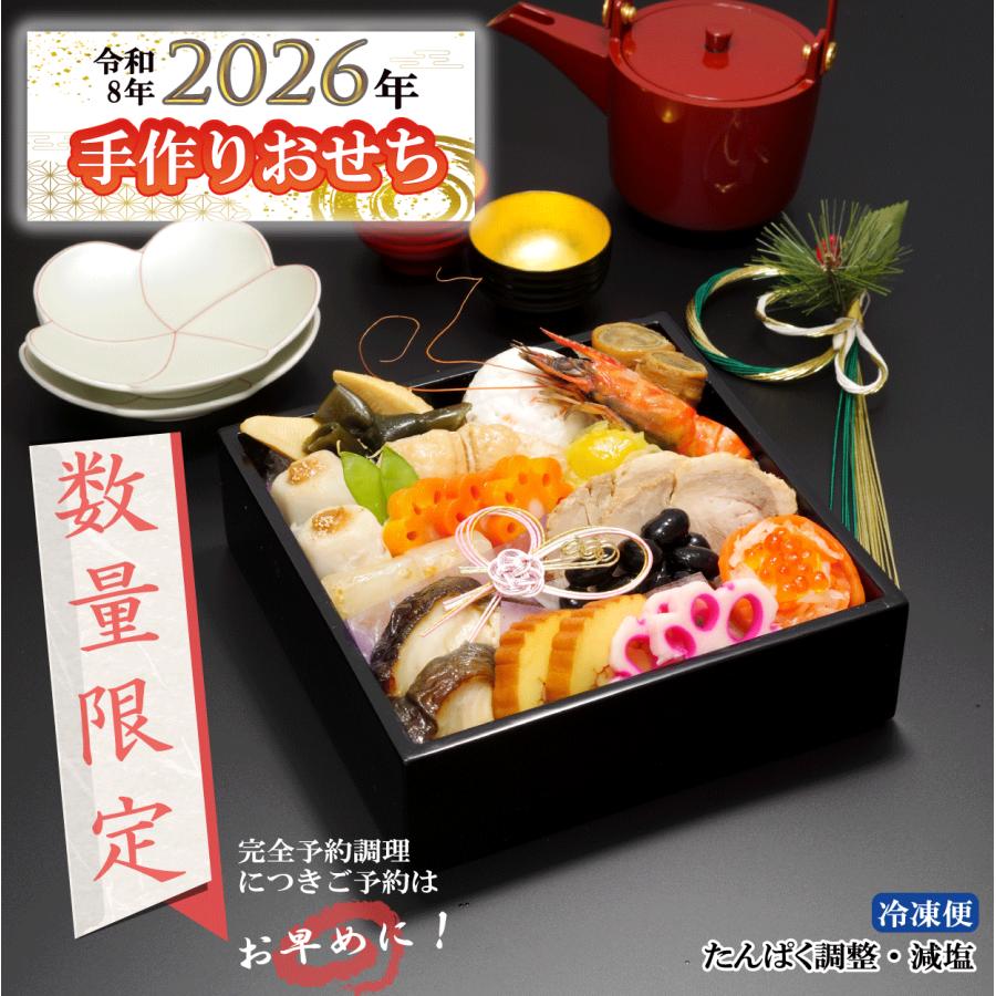 ◆管理栄養士監修、たんぱく質・塩分の成分制限がある方向けのおせちです。予約調理数量限定ですので、ご予約はお早めにお願い致します。