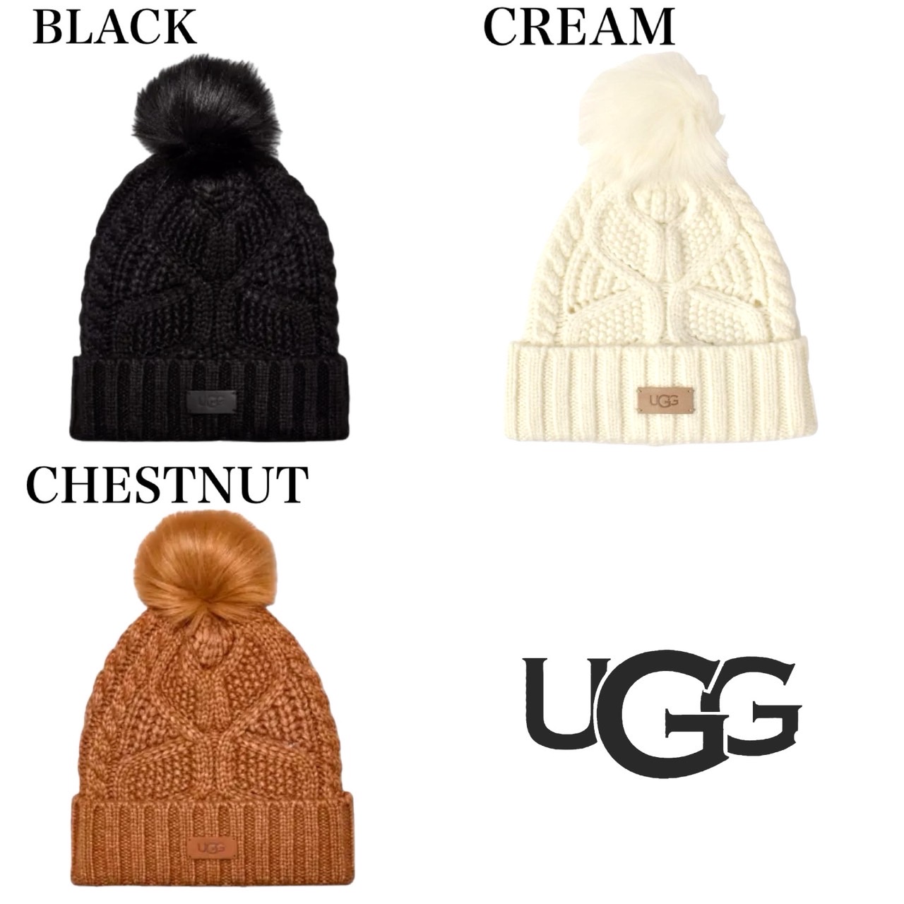 アグ UGG ビーニー ニット帽 帽子 ロゴ ビーニー ポンポン レディース 100819 ニットキャップ 防寒コーデ 小物 秋冬 W CABLE BEANIE WITH POM
