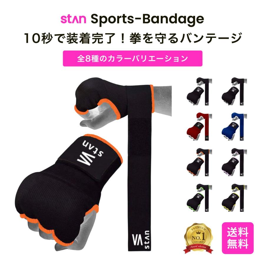 stan バンテージ インナーグローブ 簡単 マジックテープ式 簡易バンテージ ボクシング キックボクシング MMA 衝撃吸収ゲルパッド 洗濯機で洗濯可 左右 黒