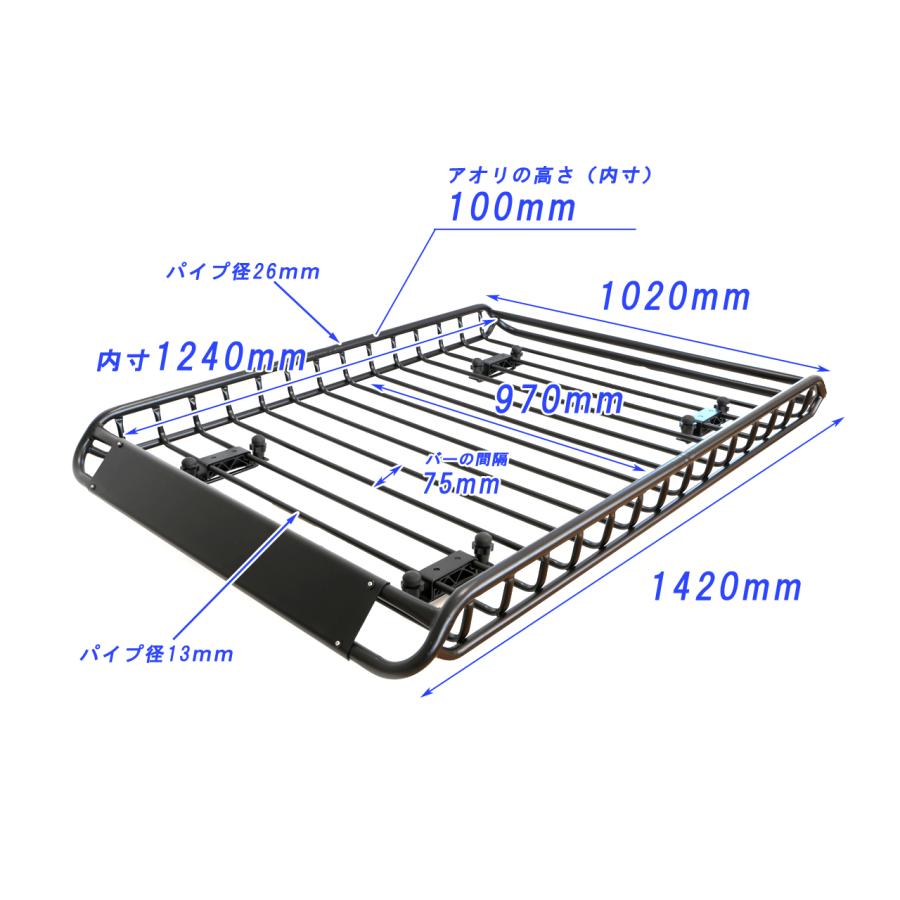 ルーフラック 組立式 ブラック ルーフバスケット R13 ルーフキャリア ツールズアイランド スチール製 3分割式 全長1420mm 汎用
