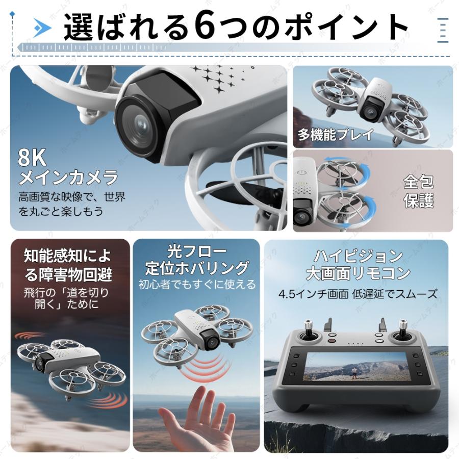 【初心者に優しいドローン】高度維持、ヘッドレスモード、体感操作、軌道飛行、初心者でも楽しめるように考えられた便利な機能を備えています。ドローン操縦に慣れていない時期でもそれらの機能で上手く練習できます。そのほか、プロペラガードを4枚付き、緊急停止、低電圧アラーム機能も搭載され、ドローン練習中の安全面、安定性を配慮しました。