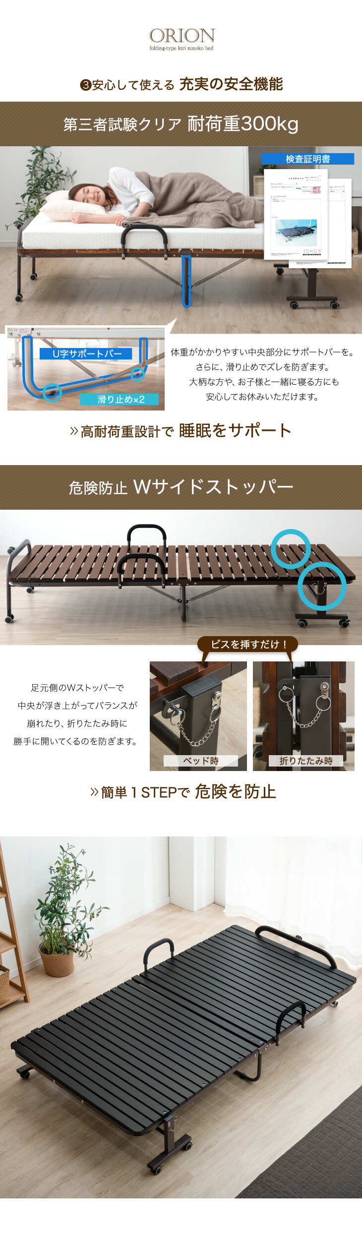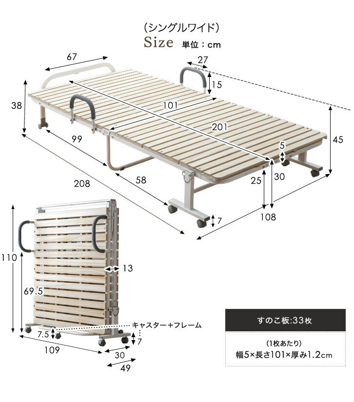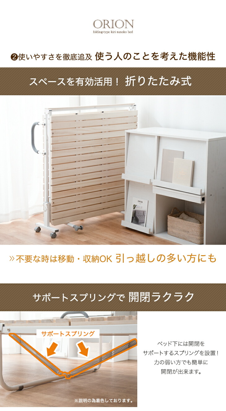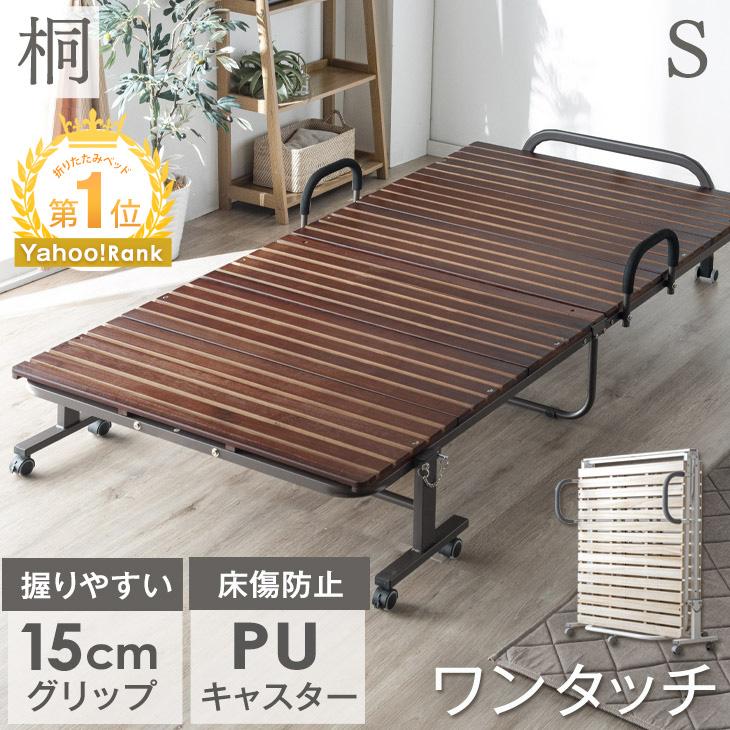 折りたたみベッド ベッド シングル 簡易ベッド 桐 すのこベッド シングルベッド すのこ ベット ベットフレーム 耐荷重300kg 折りたたみ キャスター付