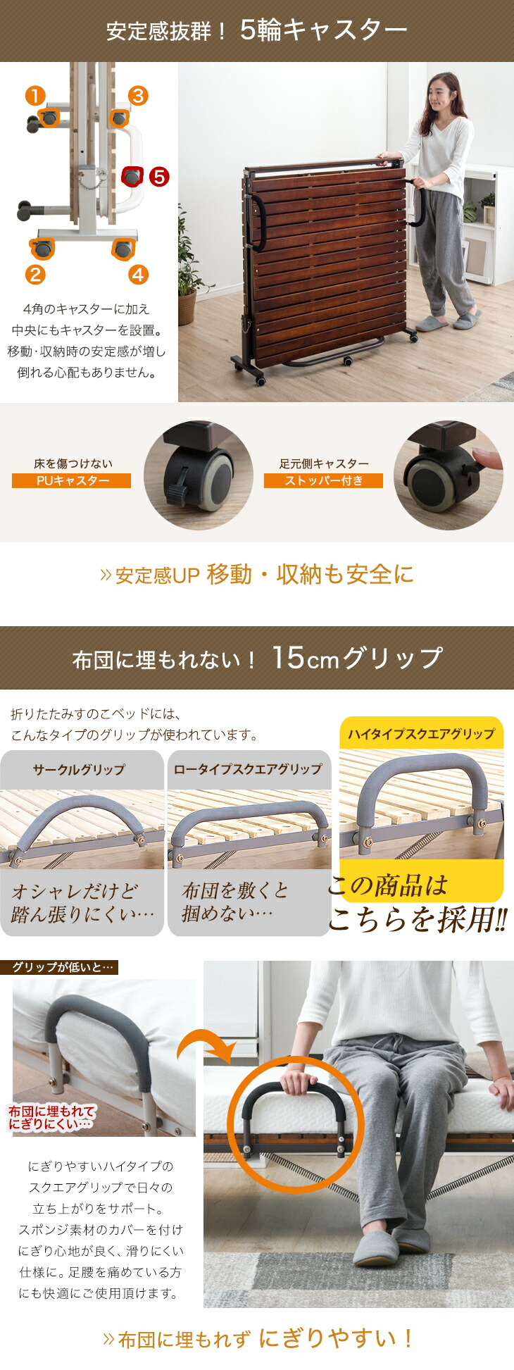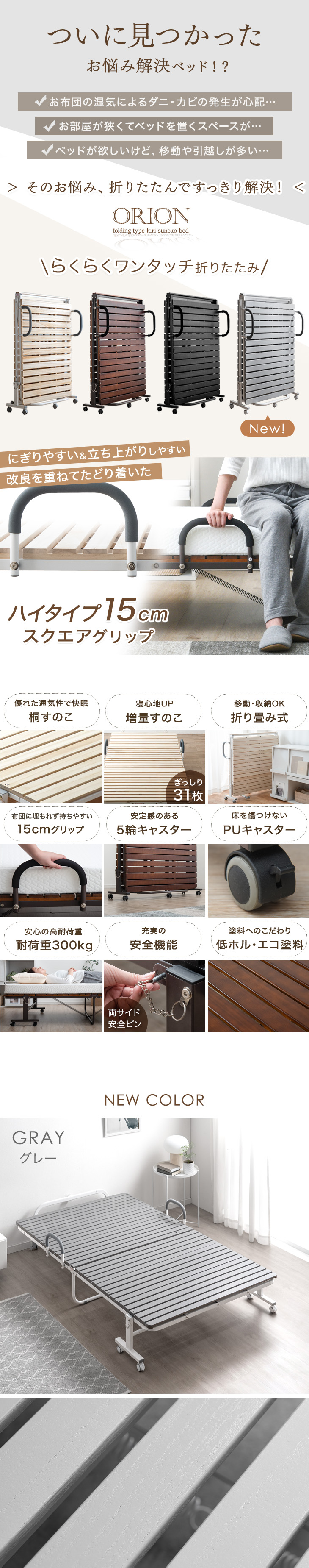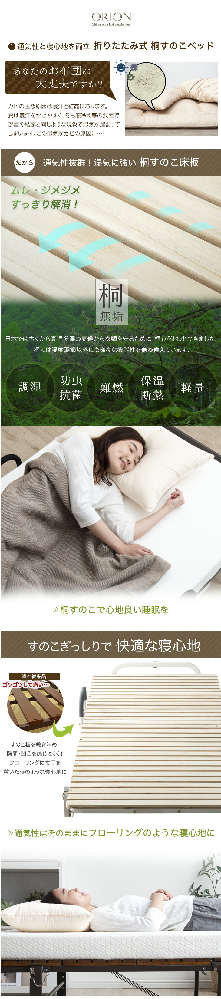 折りたたみベッド ベッド シングル 簡易ベッド 桐 すのこベッド シングルベッド すのこ ベット ベットフレーム 耐荷重300kg 折りたたみ キャスター付